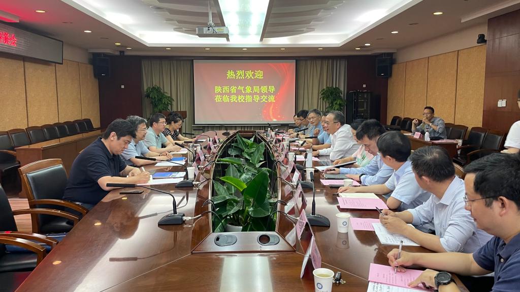 【本网讯】6月1日上午,由党委书记、局长丁传群带队,陕西省气象局一行四人莅临我校作局校合作交流。学校校长余敏明,党委办公室、科技处、招生就业处、大气科学学院、电子工程学院、资源环境学院、人工影响天气研究院相关负责人参加了会议。副校长舒红平主持会议。