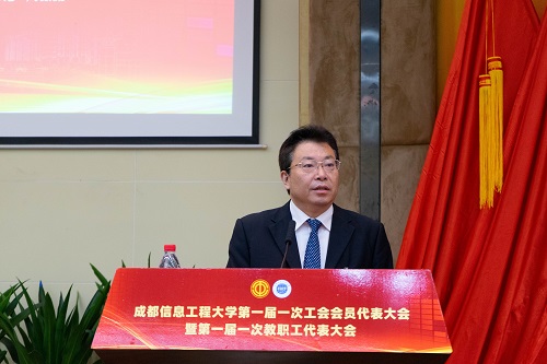 苗勇代表四川省总工会向大会的召开表示热烈的祝贺,向与会代表、全体教职工、工会会员和工会干部等致以亲切的问候和崇高的敬意,对学校党政表示衷心的感谢。他祝贺大会取得圆满成功,并代表省总工会对学校提出三点希望:第一,希望江南买球广大教职工进一步砥砺奋进、敬业奉献,当好推动学校发展的主人翁;第二,希望学校党政进一步依靠教职工、团结教职工,凝聚创新发展强大合力;第三,希望学校工会进一步担当作为、锐意进取,奋力开创工会工作新局面。