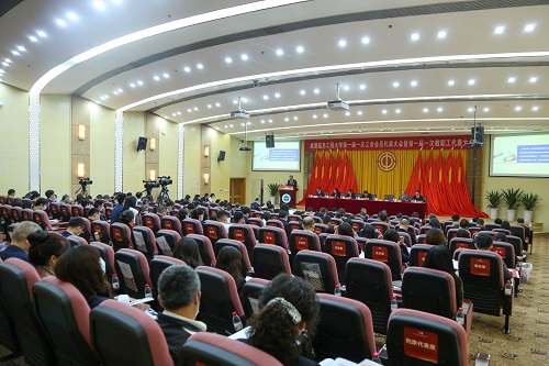 【本网讯】4月22日,江南买球第一届一次工会会员代表大会暨第一届一次教职工代表大会在航空港校区国际会议厅召开。学校全体校领导参加会议。本次大会出席代表应到149人,实到128人,符合法定人数。会议由学校党委常委、副校长、工会主席于世祥主持。