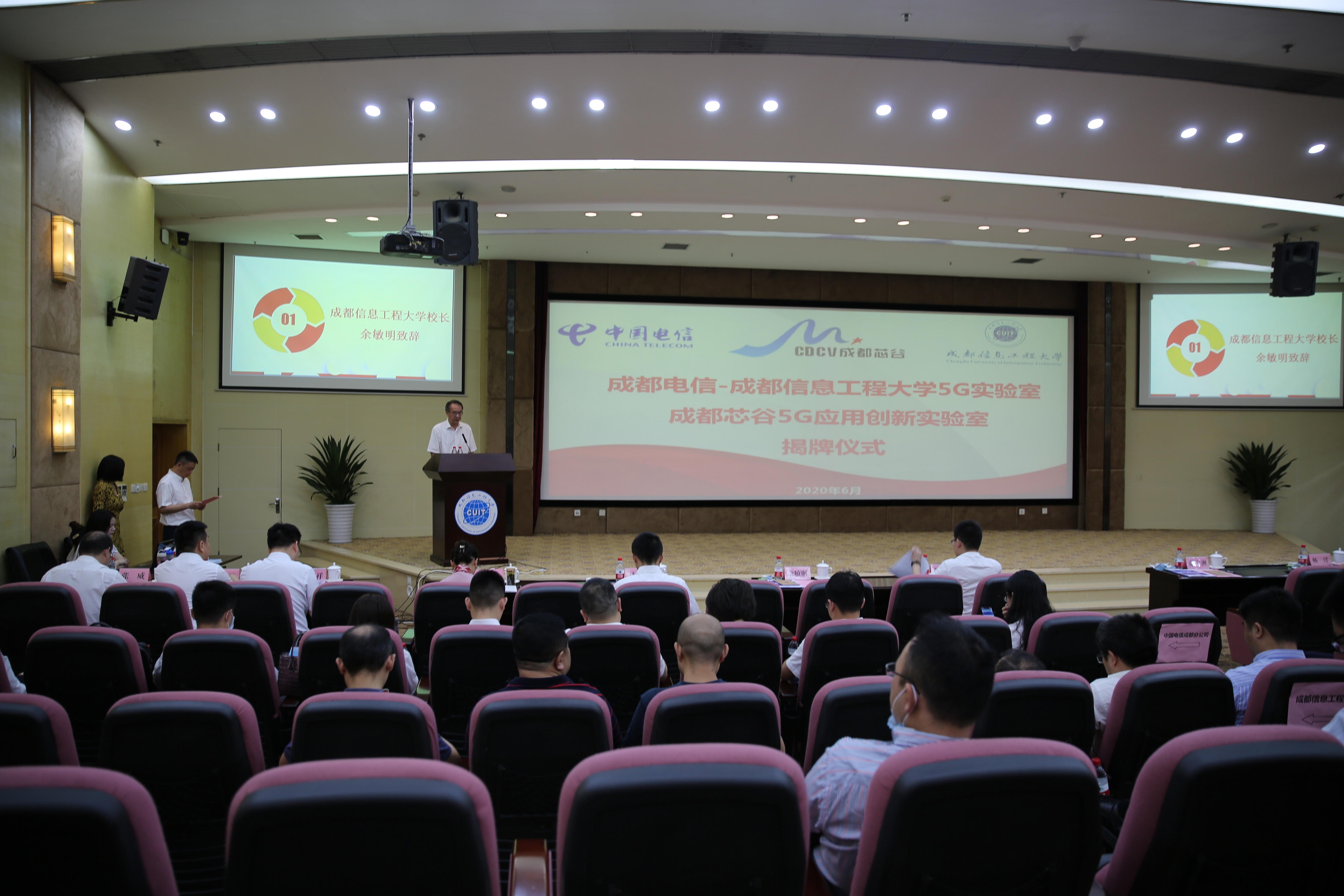 【本网讯】6月9日,西部首个校企地5G实验室——成都电信-江南买球5G实验室、成都芯谷5G应用创新实验室揭牌仪式在学校航空港校区国际会议厅举行。学校副校长范广洲主持仪式。