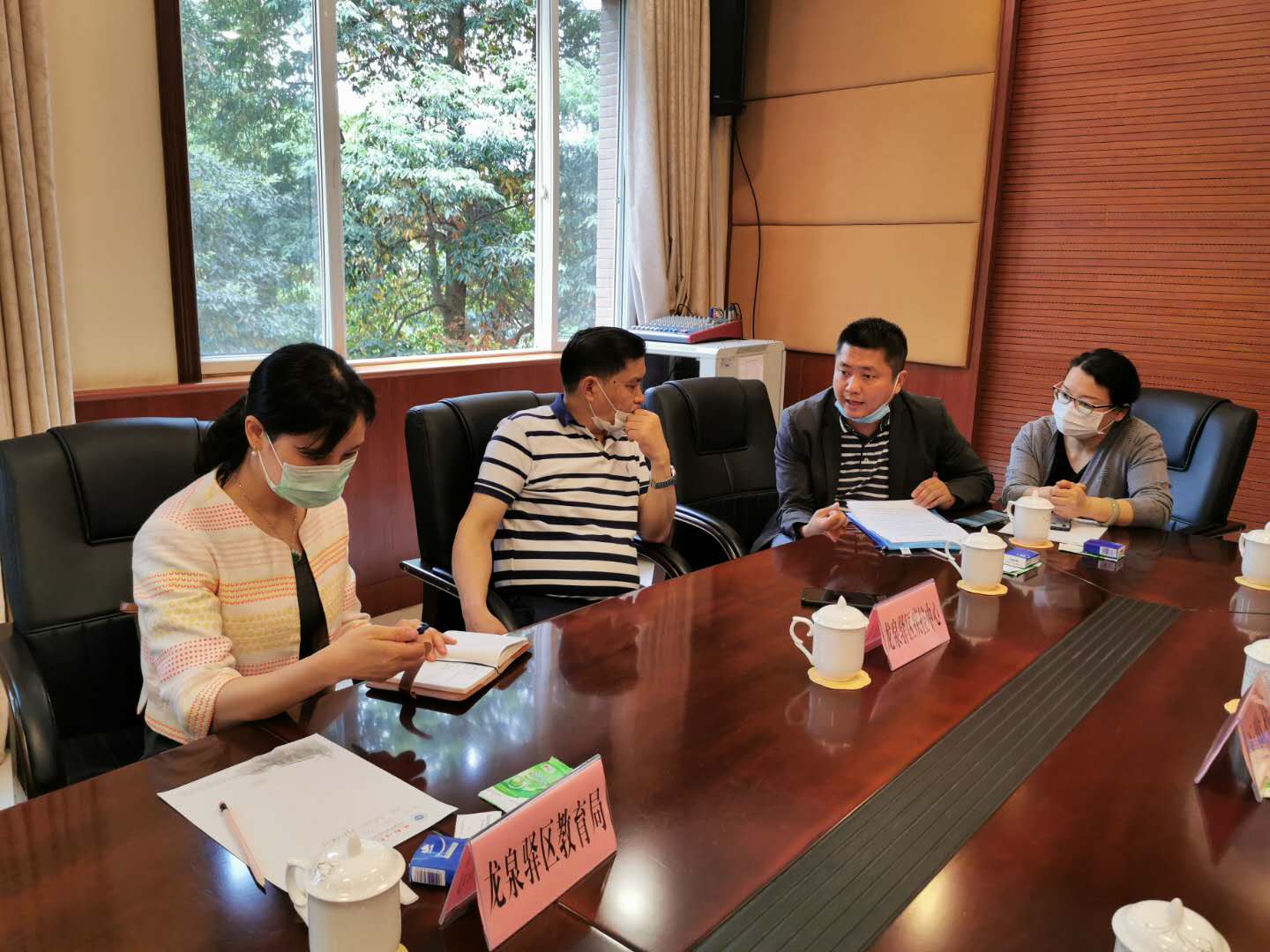 肖月强代表学校党委、行政对龙泉驿区区委、区政府在疫情防控工作中给予我校的科学指导和大力支持表示感谢,并汇报了龙泉校区复课准备工作情况、学生返校工作安排及学校在疫情防控中的工作特色和亮点。
