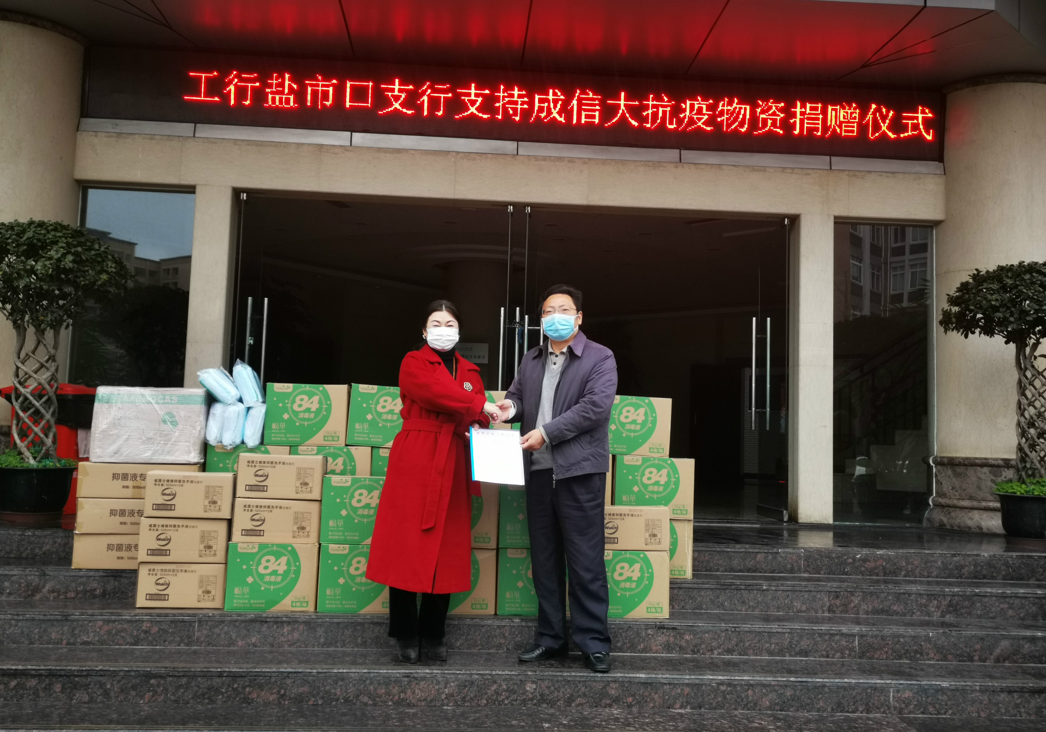 【本网讯】3月2日,工行盐市口支行向我校捐赠一批防疫物资,助力我校疫情防控工作。学校党委副书记马洪江、工行盐市口支行行长张岚等参加了捐赠仪式。