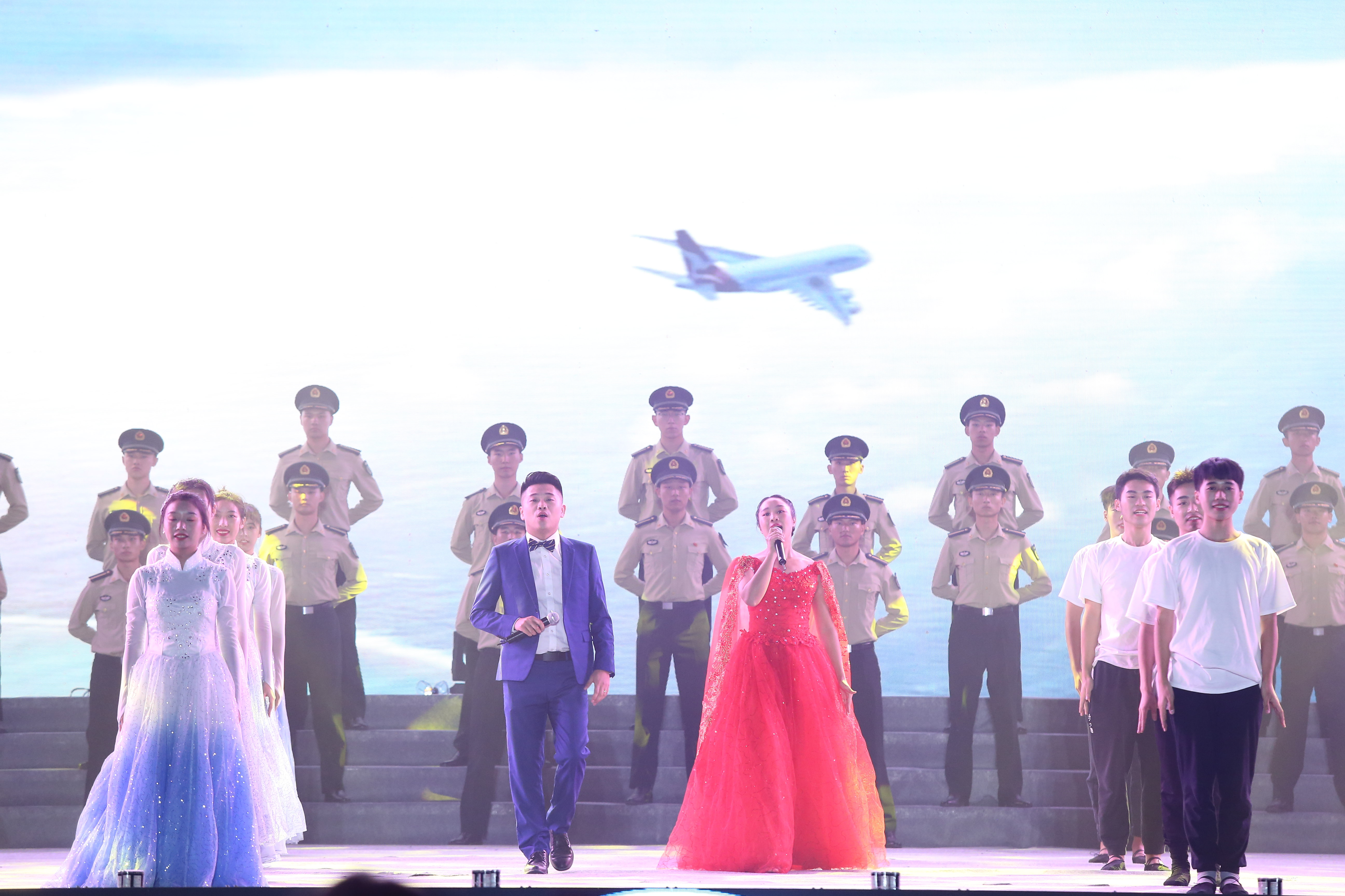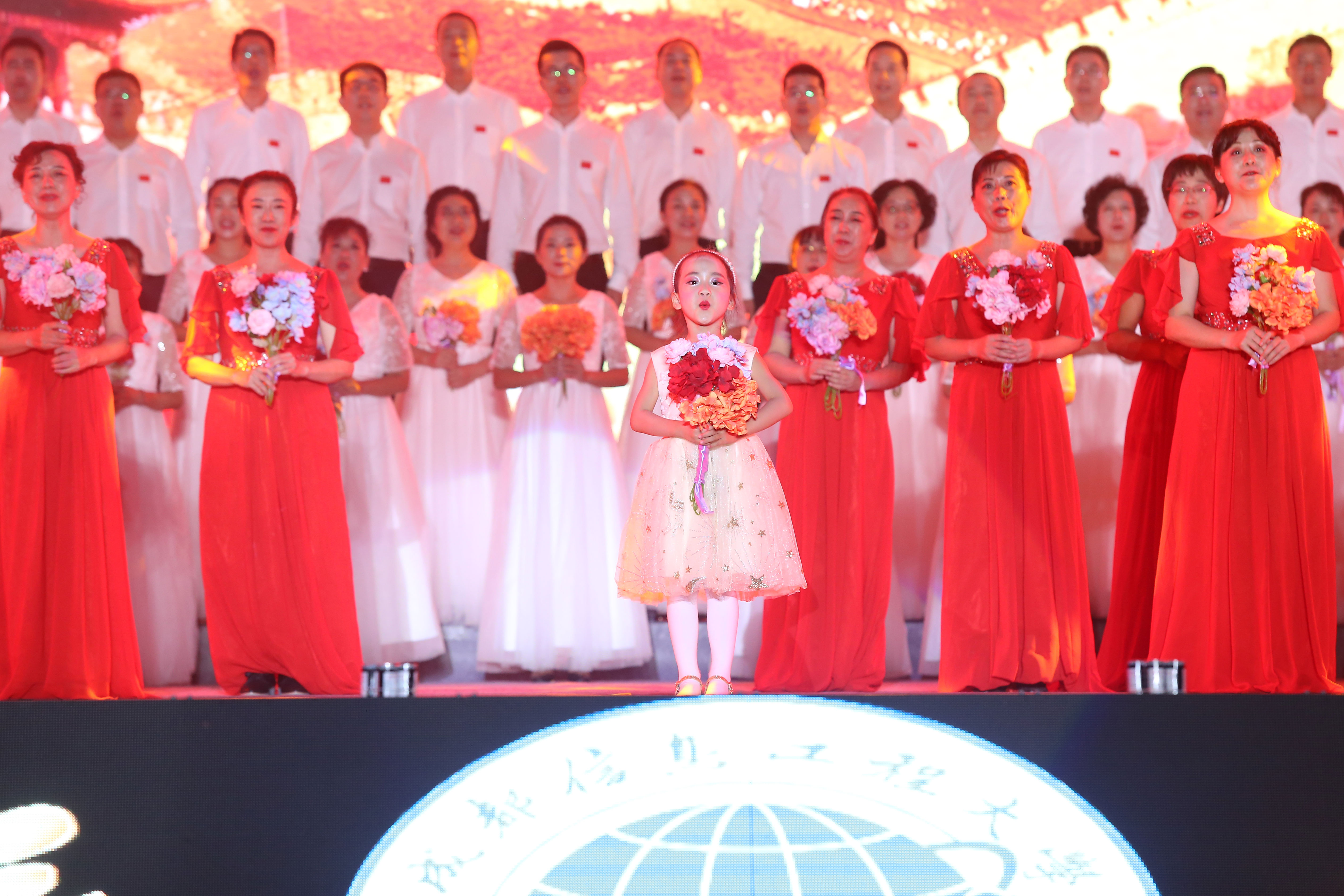 20米长的五星红旗在万人间传递将晚会推向了最高潮,全体师生共唱《我和我的祖国》,祝福伟大的祖国繁荣昌盛,祝愿成信人携手并进,再谱华章。师生们热情地挥动手中的国旗,共庆新中国70华诞,晚会在《歌唱祖国》中圆满结束。