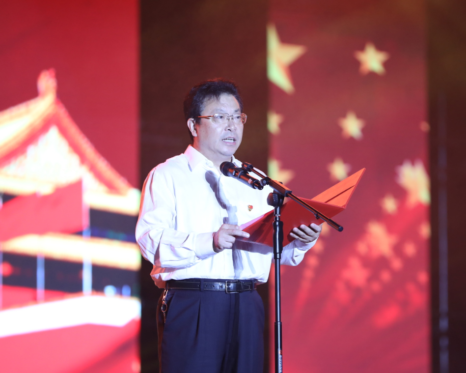 党委书记周激流代表学校党政向全体新生表示热烈的欢迎,向策划晚会的全体工作人员和学生志愿人员表示亲切慰问和衷心感谢,并与大家共同重温了共和国的发展历程,回顾了祖国及学校发展取得的成就。他勉励新同学,要常怀感恩之心,立定报国之志,厚植为民情怀,锤炼过硬本领,以大气的品格、乐观的心态、仁和的爱心和坚韧不拔的毅力,去经风雨、见世面,丰厚学识、追求真理、勇立潮头、奋力拼搏,把个人梦想融入实现民族复兴、人民幸福的宏伟事业,书写出绚丽多彩的壮丽人生。