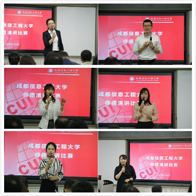 【本网讯】“我是体育老师,我用专业赢得尊重”“我从灵魂里为自己的人生进行了定位,那就是我要当教师”“教育非一朝一夕之事,没有什么可以把人轻易打动,除了真情”……5月29日下午,在学校2019年师德演讲比赛现场,来自不同教学单位的17位参赛选手声情并茂地讲述着自己或者身边同事教书育人、爱生如子的师德故事,打动了在场的评委和观众。