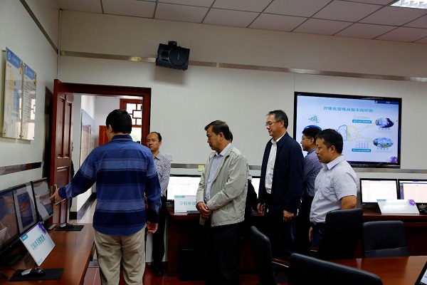 学校校长余敏明,副校长何建新、舒红平陪同中国气象局副局长宇如聪一行参观了学校气象台。