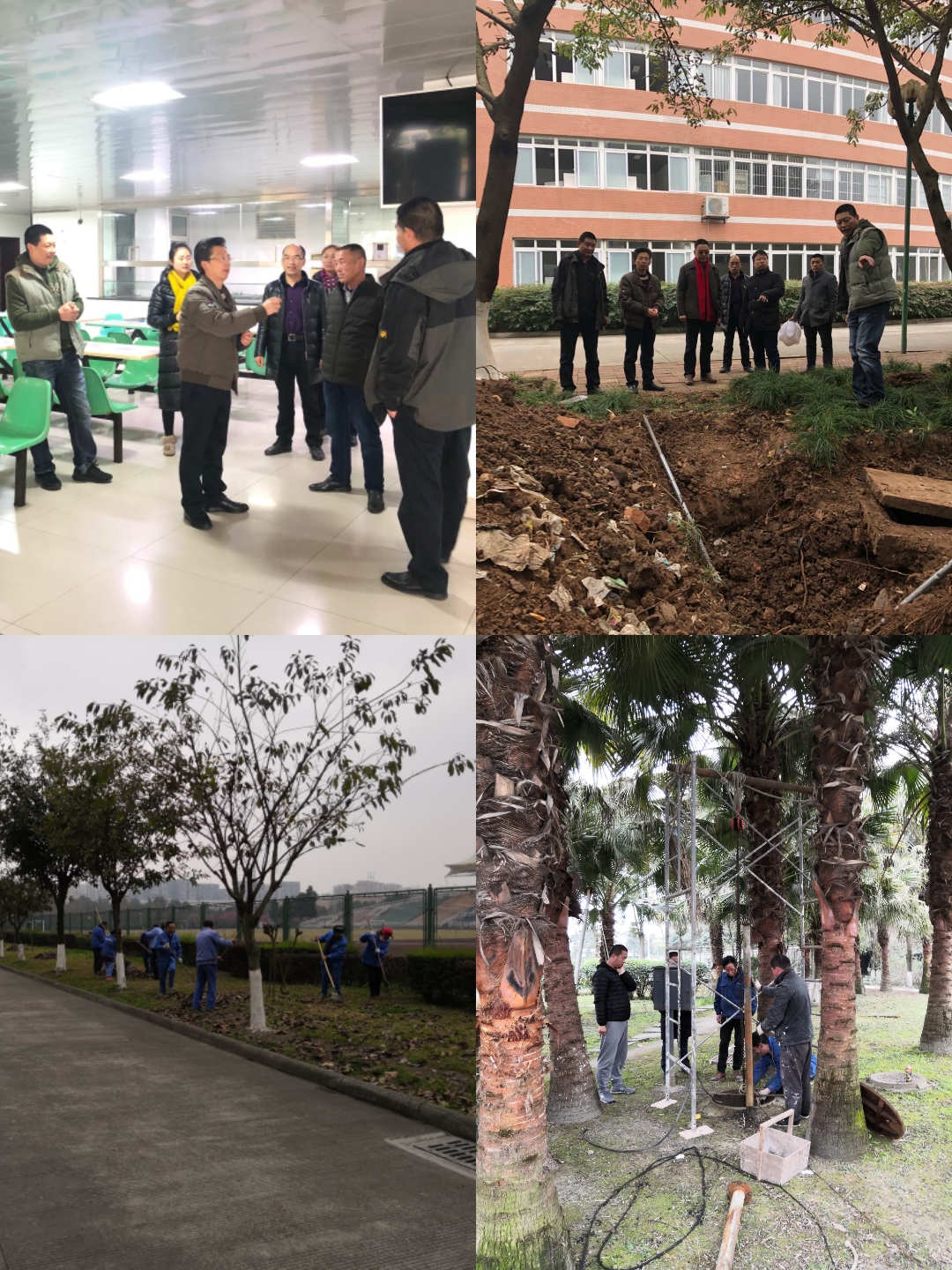 【本网讯】为确保新学期后勤准备工作有序推进,2月19日元宵佳节,学校副校长肖月强带领后勤基建处主要负责人等到航空港和龙泉校区学生宿舍、食堂、教学楼、办公楼等服务一线,详细了解后勤基建处寒假工作落实情况,实地检查指导开学准备工作。
