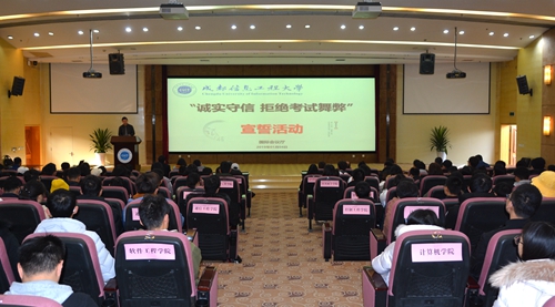 学生工作处副处长闵卫东谈到,举行此次诚信考试宣誓仪式,旨在明确考试纪律,严肃考风考纪,呼吁全体同学自律自强,诚信应考,为成信大撑起一道诚信、文明、自觉、向上的美丽风景线。他希望同学们认真复习,积极备考;严于自律,立己达人,并祝全校同学在考试中取得优异成绩。