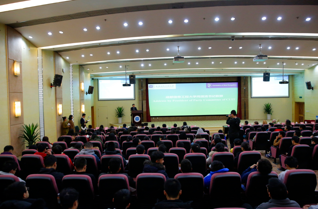 周激流在开幕式上致辞,代表学校对新罕布什尔大学专家们的到来表示热烈的欢迎,并介绍了学校的概况。他谈到,成信大以建成开放的、特色鲜明的高水平大学为目标,专家们助力国际周将为学校的开放办学注入活力,添加动力,将进一步推动两校的合作与友谊。他希望同学们珍惜这次学习机会,以饱满的热情与求知的渴望,聆听各场讲座,善于思考、勇于发问,切实提升自己的国际化视野。