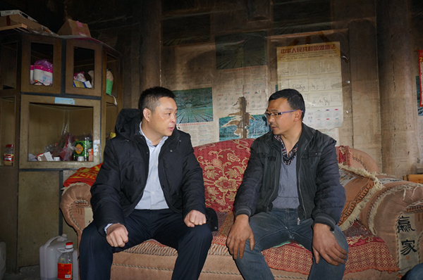 与贫困户交流