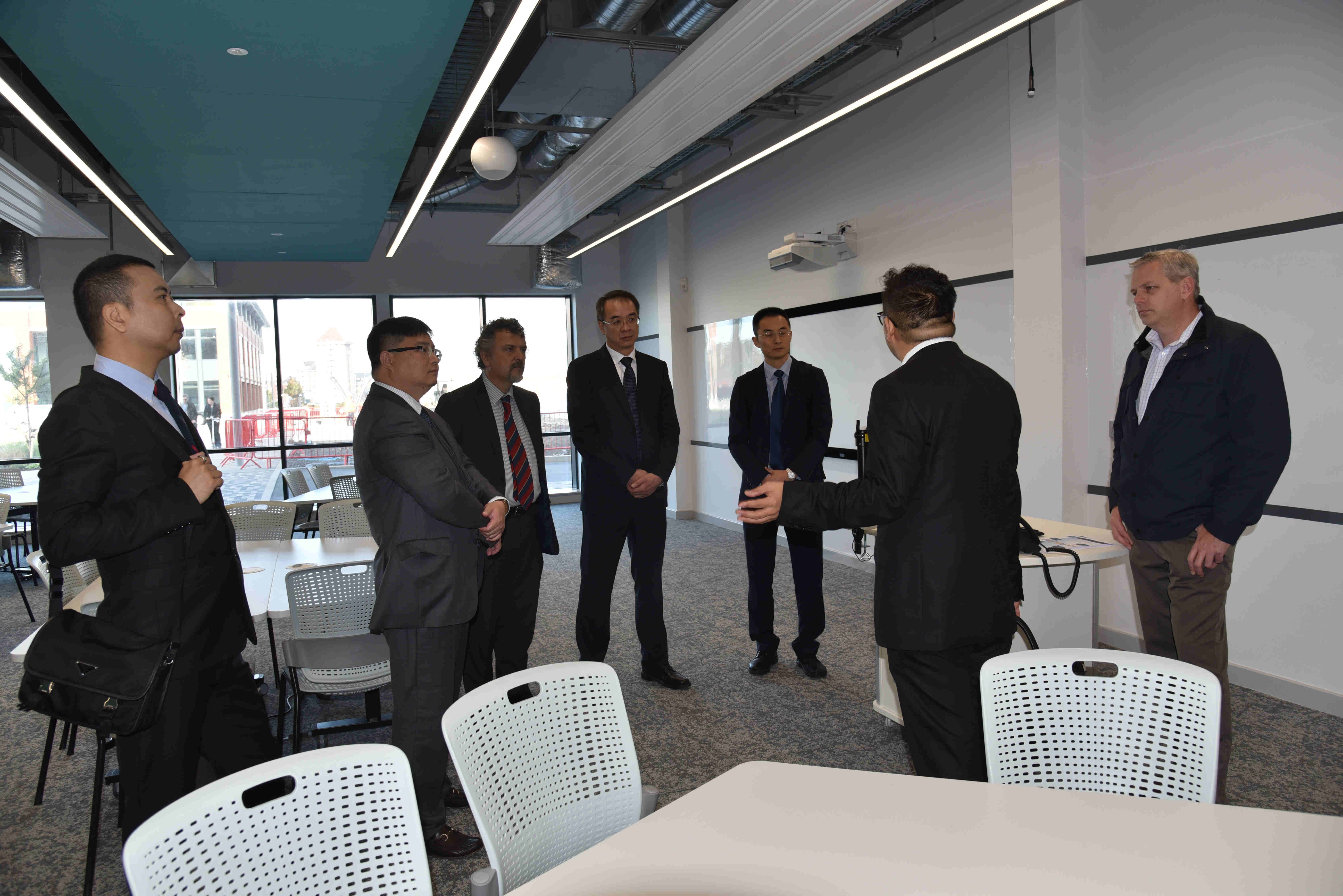 代表团访问了威尔士三一圣大卫大学斯旺西校区,与校长Medwin Hughes,副校长Simon Haslett、朱威,UKVI事务部主任Lee,伦敦教育集团总裁赖崎等代表针对三方全面合作进行了多次详尽而深入的探讨。三方就以下三个主要方面达成合作共识:第一,共享教学资源,以举办Summer School等形式进一步丰富两校学生交流,促进国际化人才培养;第二,发挥两校的学科优势,在智能汽车、信息处理、管理科学等领域搭建国际合作研究平台,联合申报国际科研合作项目,促进优秀科研成果的转化应用;第三,进一步促进两校教师的互访,共同组建国际化教学科研团队,全面提升教师的国际化水平。