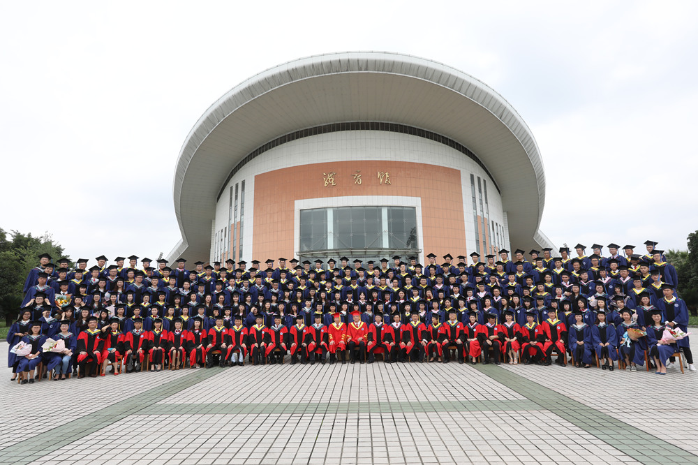 学校党委书记周激流,校长余敏明同时为全体硕士研究生、省级优秀本科毕业生授位。毕业生们身着学士服庄严走上台依次接受师者的拨穗与真切的祝福,走下台后与至亲好友热烈拥抱,合影留念。