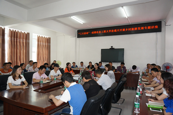 6日下午,管理学院学院院长黄萍在安云乡作了“怎样打造乡村会客厅、乡村民宿与农家乐”专题讲座。通川区副区长曾浪舟,区旅游局局长李谦、区旅游局有关负责同志,全区开展乡村旅游有关乡镇主要负责人参加了讲座。