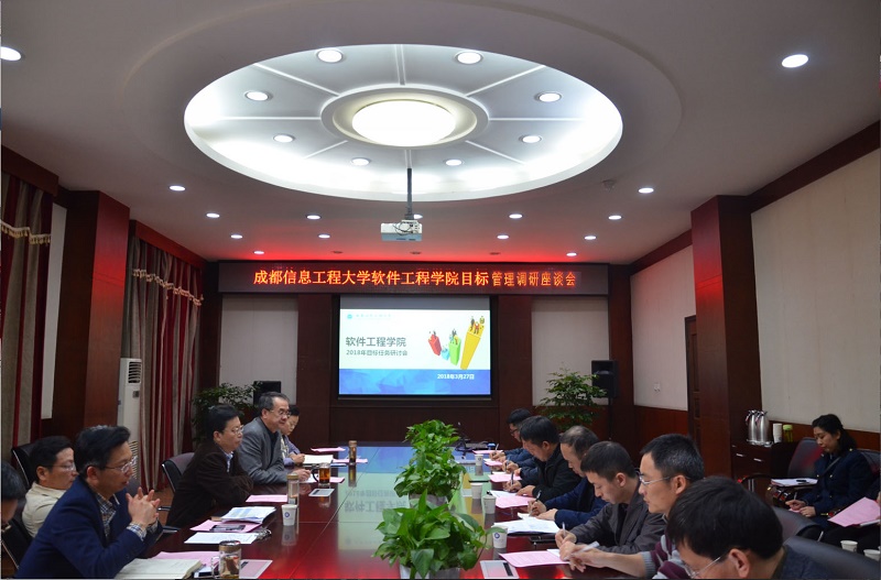 【本网讯】3月27日,软件工程学院在行政楼第六会议室召开了学院目标管理调研座谈会。学校党委书记周激流、校长余敏明,副校长马洪江、贺盛瑜、肖月强,软件工程学院全体领导班子、各团队负责人、全体教授、副教授代表、讲师代表、辅导员代表以及学校党委组织部、教务处、科技处、人事处、计划财务处相关负责人参加了会议。会议由软件工程学院院长舒红平主持。