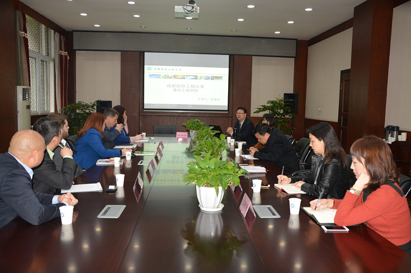 【本网讯】3月20日上午,加拿大西三一大学(TWU),西肯塔基大学(WKU),威斯康星大学苏必略校区(UWS),明尼苏达大学德鲁斯校区(UMD),萨利文大学(SU),南伊利诺斯大学爱德华兹维尔校区(SIUE),西德克萨斯A&M大学(WTAMU)ESLI七校联盟负责人David Kerr,Fang Jiang,Kali Kelleher等一行到我校考察交流。计算机学院院长何嘉,通信工程学院院长李英祥,党总支书记刘绍全,国际交流处、通信工程学院相关老师参加了此次交流会。