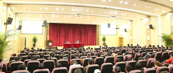 11月23日下午,学校在国际会议厅召开党的十九大精神宣讲会。特邀四川省委宣讲团成员、省委党校常务副校长李新教授来校作“学习贯彻党的十九大精神”宣讲。全体校领导,全体中层干部,各级人大代表、政协委员,民主党派主要负责人,马克思主义学院全体教师,全体党总支组织员,全体辅导员,学生党员代表参加了学习,宣讲会由党委书记周激流主持。