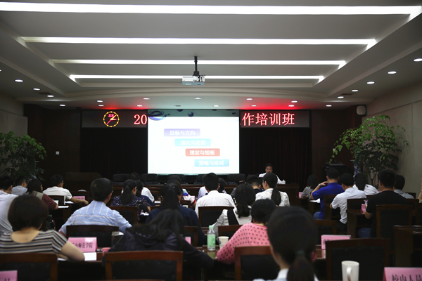 5月17日,2017年高校舆情信息工作培训班开班仪式在我校航空港校区行政楼一会议室举行。江南买球党委副书记敬枫蓉出席开班仪式。来自广西、四川等36所高校负责舆情信息工作的教师参加了此次培训。开班仪式由我校宣传部副部长丁恒康主持。
