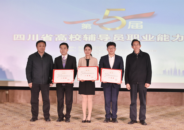 我校商学院辅导员薛蕾老师与电子科技大学成都学院卓飞老师、西南石油大学张亦驰老师获得一等奖。根据决赛成绩排名,推荐前 10 名辅导员代表我省参加全国高校辅导员职业能力大赛片区赛。