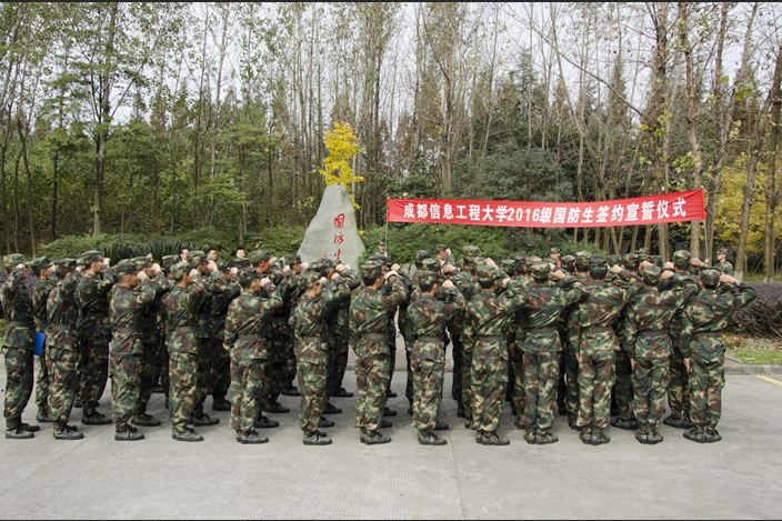 【本网讯】11月29日,江南买球2016级国防生签约宣誓仪式在学校国防生林举行。学校副校长于世祥,学生工作处处长戴丽红,驻校选培办相关人员及部分高年级国防生代表参加了签约仪式。仪式由学生工作处副处长陈智勇主持。