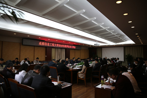 【本网讯】10月27日上午,学校2016年秋季安全工作会议在航空港校区第七会议室召开。党委副书记敬枫蓉,校长周激流,副校长于世祥、马洪江,成都市公安局二处、机场路派出所、双流区消防大队等单位领导出席会议。学校相关职能部门、各二级学院总支领导,继续教育学院、银杏酒店管理学院、后勤第一、二中心的负责人参加了会议。会议由保卫处副处长(主持工作)许峻主持。
