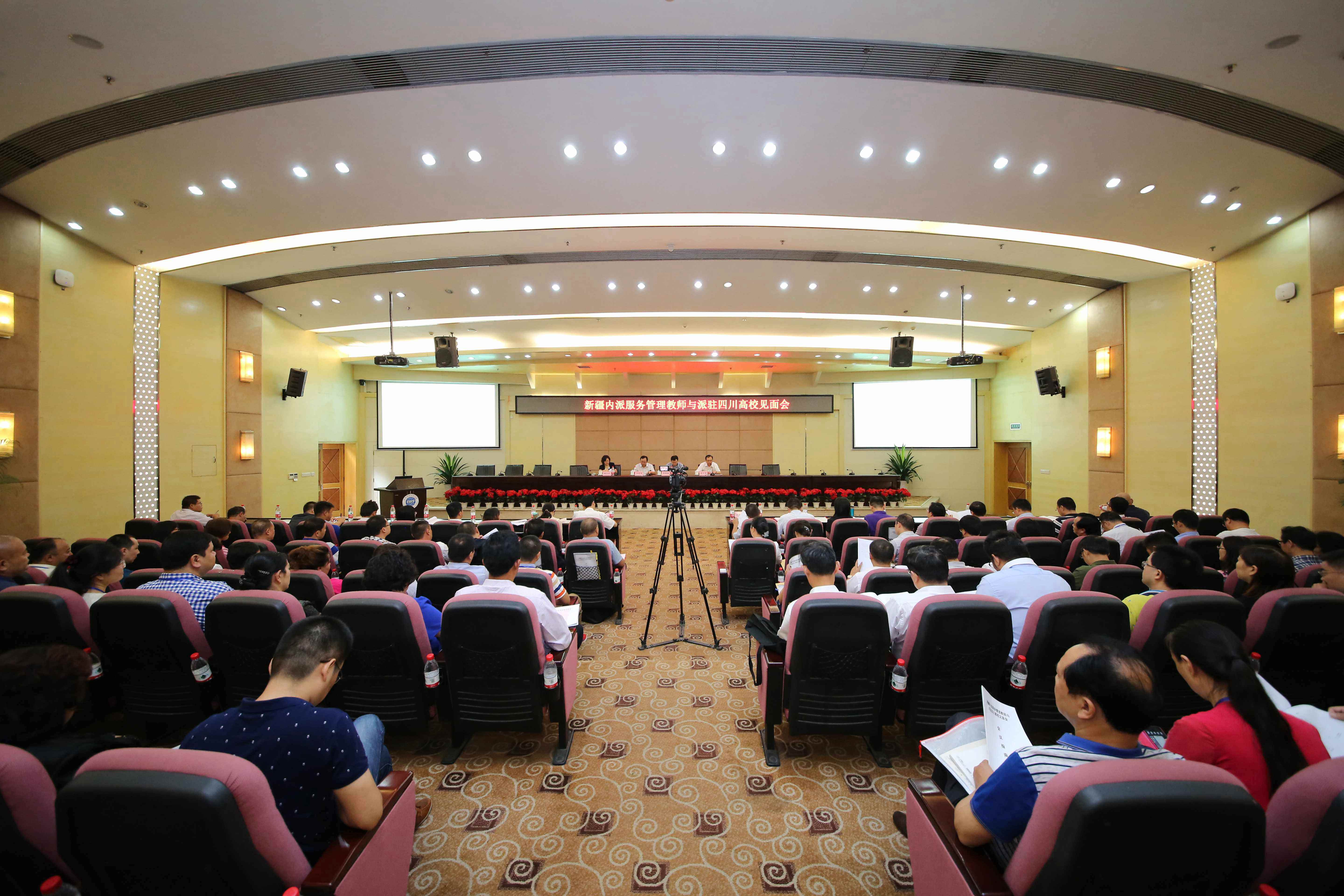 【本网讯】9月9日,新疆内派服务管理教师与派驻四川高校见面会在我校召开。省委教育工委委员、省教育厅党组成员李光华,我校校长周激流,新疆内派教师协调站站长徐生智,59名新疆内派教师及四川相关高校代表参加了此次见面会。见面会由省委教育工委、省教育厅宣传思想工作处处长陈小红主持。