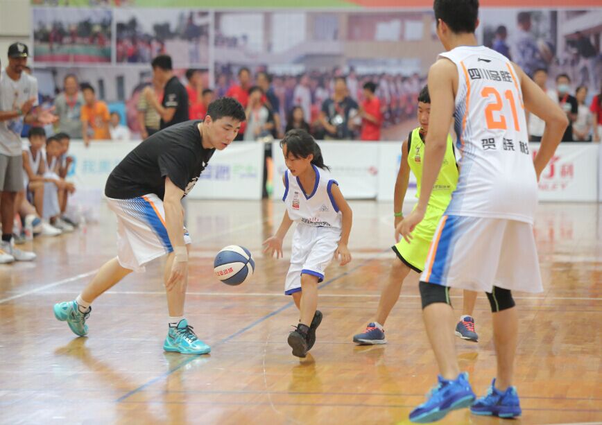 【本网讯】7月24日上午,我校体育馆举行了一场精彩而又特殊的篮球表演赛,这场精彩的篮球赛由CBA冠军球队、四川金强队队员和来自全省希望小学的30名小球员共同完成。随着这场精彩的表演赛的结束,2016姚基金希望小学篮球季四川省季赛也圆满落幕。