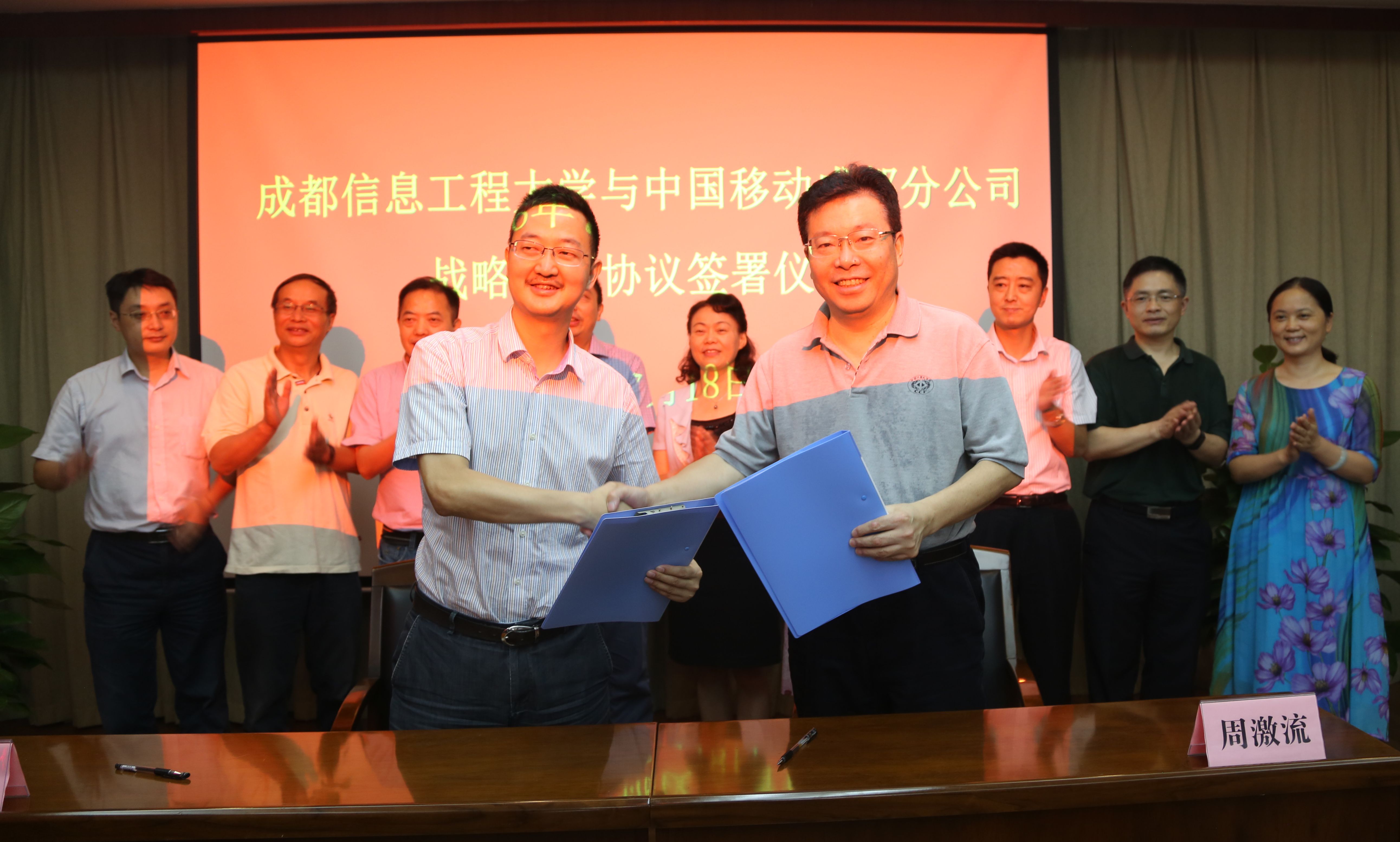 【本网讯】7月18日下午,我校与中国移动成都分公司战略合作签约仪式在行政楼七会议室举行。中国移动四川省分公司副总经理刘耕、中国移动成都公司总经理夏泳及相关部门领导,我校校长周激流,副校长贺盛瑜,党政办、宣传部、学生工作处、计划财务处、招生就业处、资产处、后勤管理处、保卫处、校团委以及信息中心等相关部门负责人出席了签约仪式,签约仪式由贺盛瑜主持。