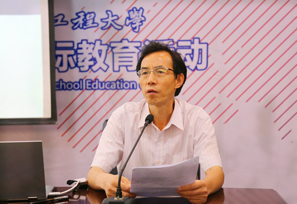副校长何建新作了“以审核评估为契机,推动学校内涵建设与发展”的工作报告,回顾了审核评估工作开展以来我校取得的六个方面阶段性成效:一是厘清了人才培养中存在问题,明确了本科教学建设方向;二是强化了人才培养中心地位,确立本科教学优先地位;三是多措并举,加速师资队伍建设;四是规范教学管理,加强教学基本建设;五是加强学风建设,提升学生服务水平;六是完善教学质量保障体系,加强教学质量监控。何建新提出了教学工作中丞待解决的问题,并强调应从增强全员服务教学意识,强化人才培养中心地位;加强教风、师德师风建设,提升教师综合素质;完善自我评估制度,健全质量保障体系;加强国际合作与交流,提升教师国际化水平;调整工作状态,认真完成本科教学工作审核评估工作等方面全面推动学校内涵建设与发展。