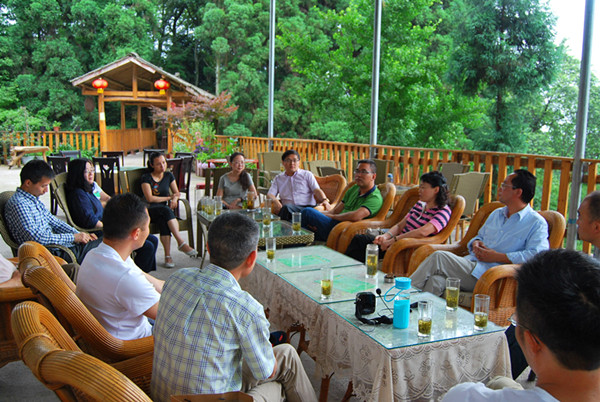 会后,与会人员参观了民革支部党员陈晖同志在蒙顶山创建的高山茶文化创新基地,并与在此实习的我校旅游专业学生进行了交流。
