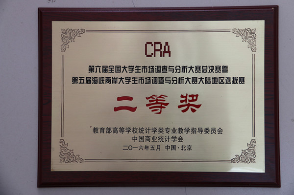 我校学生姚儒、张荣、苏越、吴露敏、罗龙洲在领队和技术指导教师丛日玉的带领下,历经网上知识考试、校内比赛选拔、西南分赛区选拔、专家网上评审等多个环节比赛,从整个西南分赛区中脱颖而出,最终凭借策划、调查实施、数据处理与分析等专业实战能力打入全国总决赛,获得全国二等奖的优异成绩。同时,学校荣获“最佳院校组织奖”。