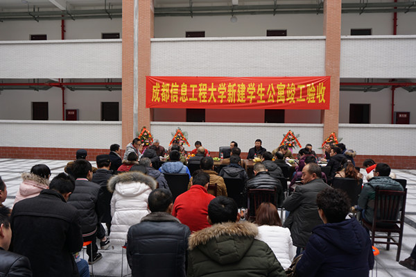 【本网讯】2016年2月1日,学校党委书记赖廷谦、副校长向武带领学校建设工作小组成员以及纪监审办公室、计划财务处、后勤管理处、学生工作处、后勤服务公司、建设处相关人员,会同双流质监站、设计、地勘、监理、跟审、施工单位对我校新建学生公寓项目进行了竣工验收。验收分为土建、安装、资料三个小组,对各分部分项进行了检查验收,认为该工程完成了全部施工内容,结构符合规范设计要求,工程资料基本齐全,观感效果良好,满足学生住宿使用要求,一致同意通过竣工验收。