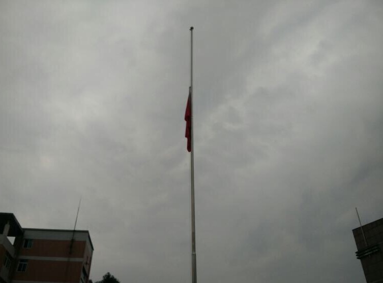 正常升旗流程后,升旗手将国旗降到离杆顶约全杆三分之一处,全体人员礼毕。高高飘扬的66年的五星红旗,第二次为在78年前惨遭日寇杀戮的三十万冤魂而半垂,昂起的却是中华民族不屈的头颅和捍卫和平的坚强意志。