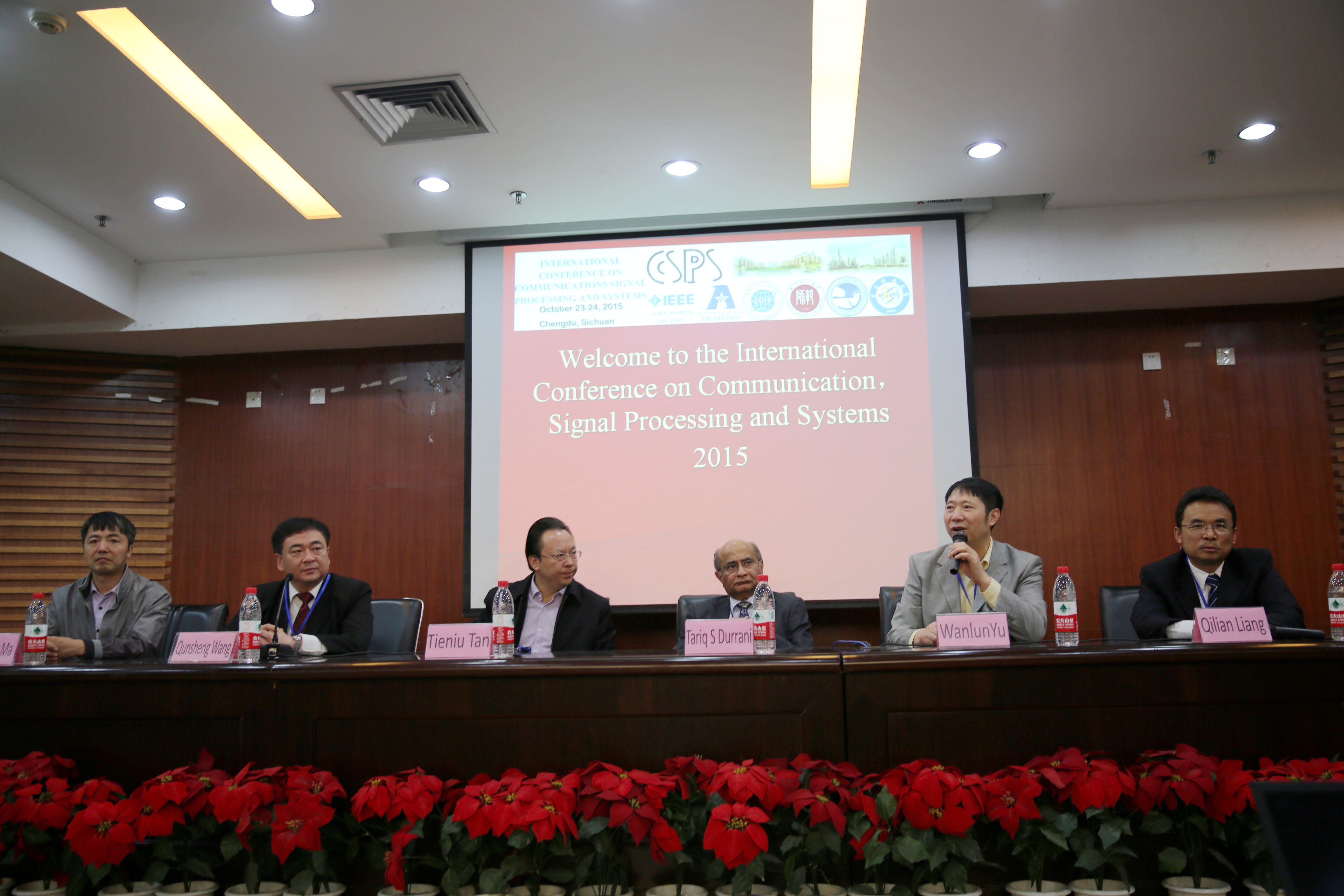【本网讯】 10月23-24日,由天津师范大学主办、江南买球承办的“2015年通信、信号处理与系统国际会议(CSPS2015)”在我校成功举办。英国爱丁堡皇家学会副主席、IEEE副主席、英国斯特拉斯克莱德大学Tariq S Durrani教授,中国科学院院士谭铁牛,美国德州大学阿灵顿分校Qilian Liang教授,天津师范大学副校长王群生,学校副校长余万伦出席了开幕式。会议由大会主席Qilian Liang主持。