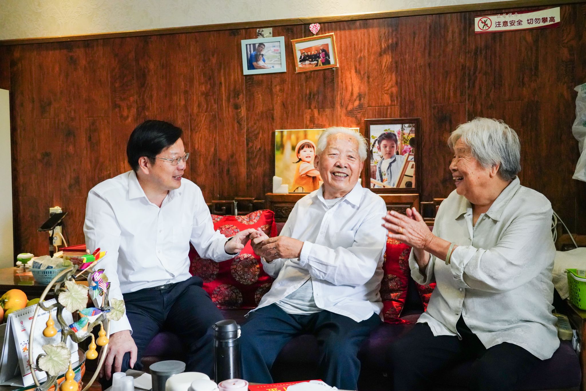何建新到养老院和老同志家中,走访慰问了霍德棣、祝静敏、卫素贞、李祯贤等离退休老干部、老党员教师,与老同志们亲切交谈,详细了解了老同志们的饮食起居、日常护理和健康状况,询问了生活中的实际困难。他表示,学校如今各项事业取得的长足发展,源于老前辈们不懈奋斗和无私奉献打下的坚实基础,衷心感谢老前辈们长久以来对学校的大力支持和关心,为学校改革发展贡献的智慧和力量。他祝愿老同志们健康长寿、生活愉快、家庭幸福。老干部、老党员们深情回忆了在学校工作、与党同心同行的奋斗经历,感谢学校长期以来的关心和照顾,由衷地为学校跨越式发展感到骄傲,表示将一如既往地关注学校各项工作,尽其所能为学校的发展建设建言献策。
