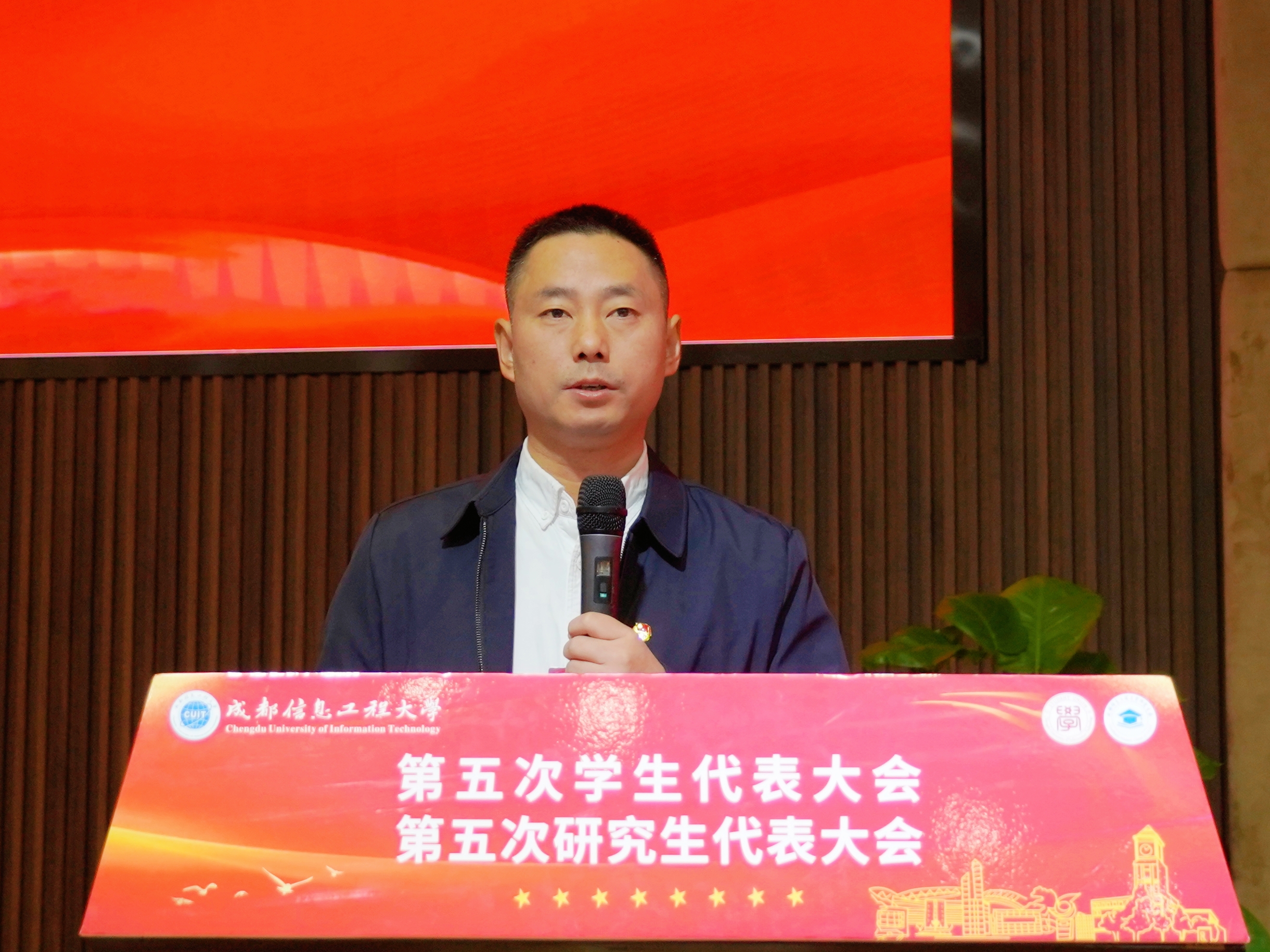陈权亮代表学校党委对大会的召开表示祝贺,向长期以来关心和支持我校学生会、研究生会工作的团省市委、省市学联、兄弟院校表示感谢,向全校青年学生致以亲切的问候。他表示,校学生会、研究生会在学校党委的坚强领导下,在学校团委和上级学联的指导下,紧密围绕学校的中心工作,在校园文化建设、学生权益维护、社会实践、志愿服务、创新创业以及对外交流等多个领域都取得了令人瞩目的成绩,为学校的稳定与发展注入了新的活力。他寄语成信青年:一是坚定理想信念,勇担时代重任;二是注重全面发展,提升自身素质;三是深化学联改革,激发组织活力。他希望学生骨干能够努力开拓学校发展新格局,为学校的发展贡献成信智慧和青春力量。