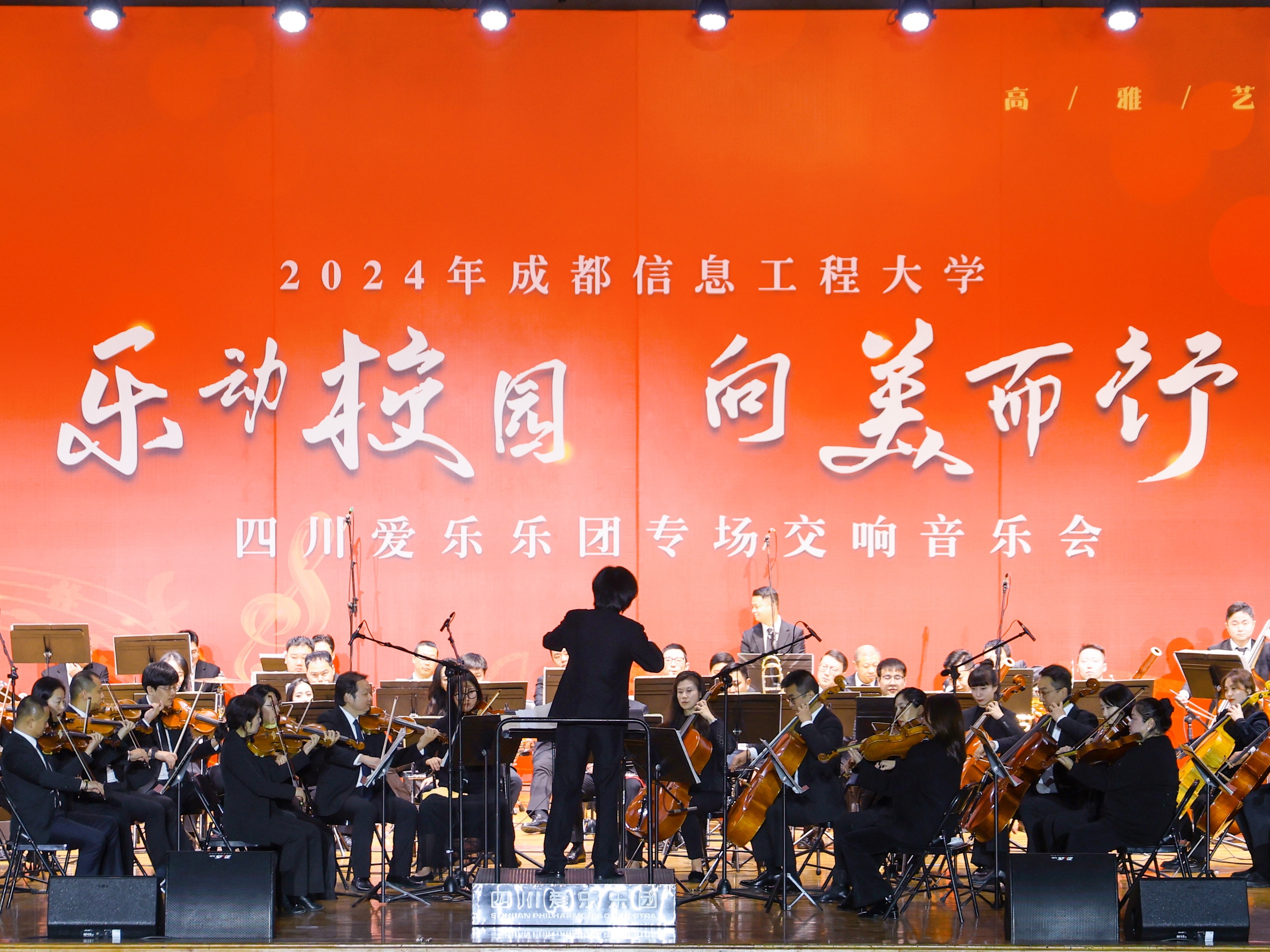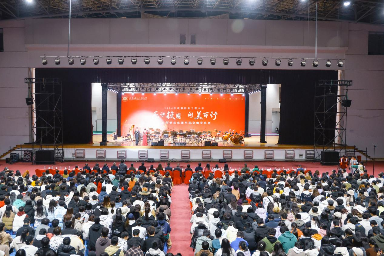 【本网讯】11月29日,学校在航空港校区体育馆举办2024年江南买球“乐动校园 向美而行”四川爱乐乐团专场交响音乐会。学校党委副书记杨奇才,党委常委、副校长陈权亮,党委常委、党委宣传部部长张小红,四川爱乐乐团副团长王小毛,学校相关职能部门、学院负责人,乐团相关工作人员,师生代表近三千人齐聚一堂聆听音乐会,优雅的音乐让校园沉浸在浓厚艺术氛围中。