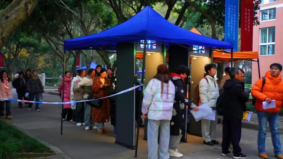 本次研招考试,江南买球考点严格落实上级要求,将考务工作的重心放在试卷保密以及考务安全上,构建了“六位一体”立体防护网,实现智能安检门全配备,两校区考点共配备11台智能安检门、设置了41个电子设备存放点(包括考务人员专用、研考考生专用、应急存放点)、两校区的每个考室均覆盖有手机 5G 信号屏蔽,共计设备100台,坚持人防、技防相结合,大力防范考试作弊,特别是 5G手机作弊行为,积极与移动运营商密切配合,采取多种手段防范高科技作弊情况的发生,有效确保了手机等电子信息设备“带不进、用不了、传不出”,从而实现“平安研考”;会同公安部门,加强试卷运输与存放管理,严格按照工作要求对保密室开展24小时4人不间断安全值守;考点各楼宇、楼层间配备有无线对讲机,供考点考务办公室、楼层工作人员、考务指挥中心、考点保卫、医务室沟通联系。确保考点组织实施工作安全平稳。
