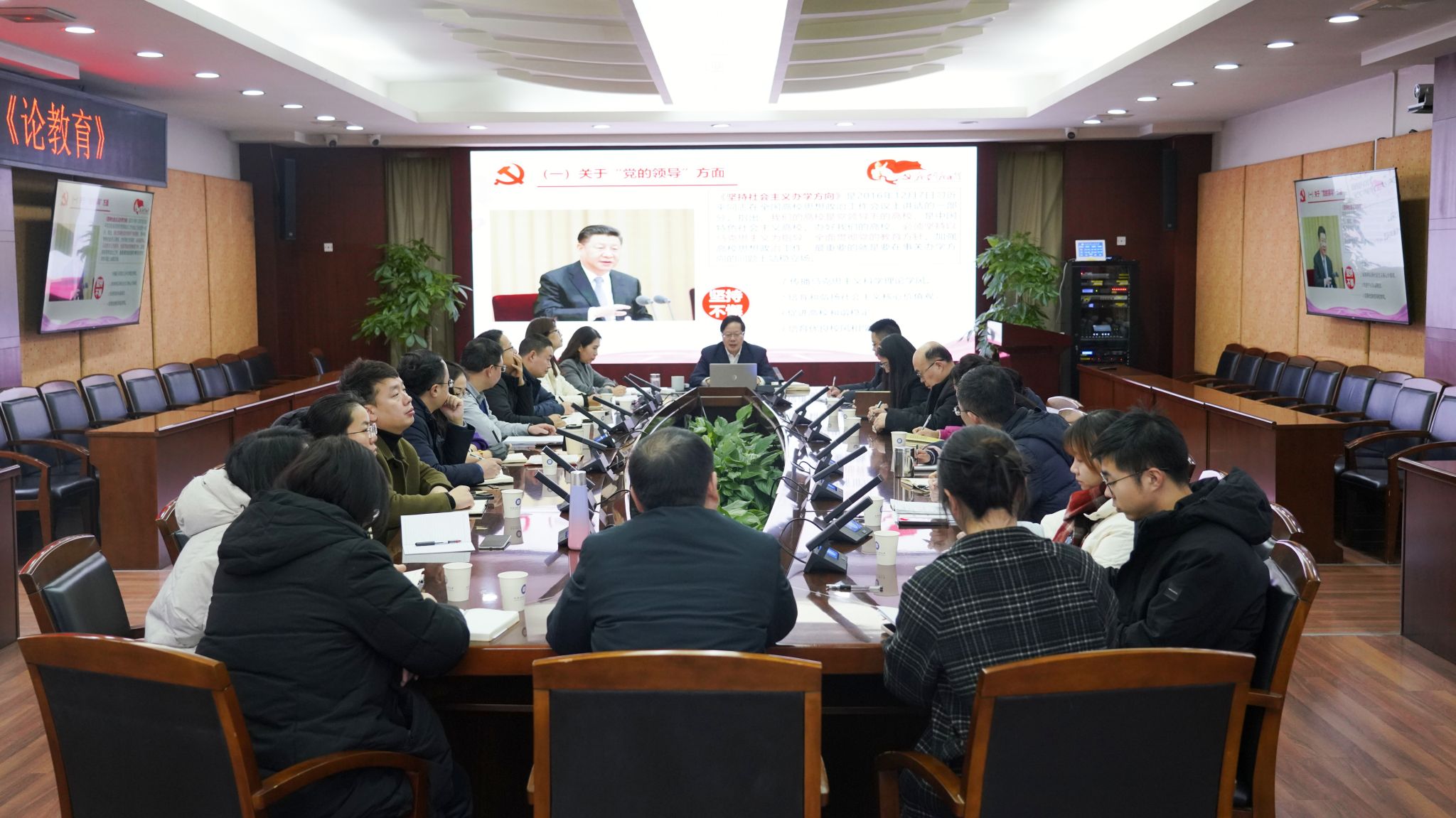 沈火明结合自身学习生涯中铭记师恩的感悟和长期从事教育教学实践,对“党的领导”“教师职责”“思想政治教育”“教育、科技、人才”等四个方面进行了深入分析。他指出,坚持党对教育事业的全面领导是办好教育的根本保证,要确保党的领导贯穿教育工作全过程。教师作为教育工作的中坚力量,肩负着为党育人、为国育才的光荣使命,必须不断提升自身素质,成为塑造学生品格、品行、品位的大先生。思想政治工作要紧密结合时代特点和学生实际,创新工作方法和手段,增强思想政治教育的针对性和实效性,引导学生树立正确的世界观、人生观、价值观。教育、科技、人才是全面建设社会主义现代化国家的基础性、战略性支撑,要坚持教育优先发展、科技自立自强、人才引领驱动,加快建设教育强国、科技强国、人才强国。