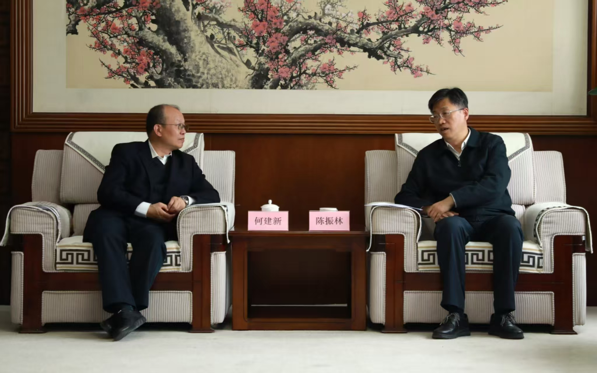 【本网讯】2月11日,学校校长何建新一行赴中国气象局拜会中国气象局党组书记、局长陈振林。双方就进一步深化局校合作、推动高质量发展,加强科技创新、建设高层次气象人才队伍等方面进行了深入交流。