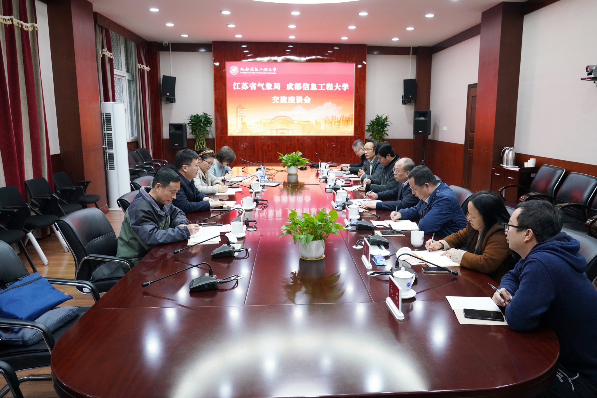 江苏省气象局减灾处、气象探测中心的主要负责人及相关工作人员,我校科技处(大学科技园管委会办公室)、大气科学学院、电子工程学院(大气探测学院)主要负责人及相关团队教师参加了交流座谈。