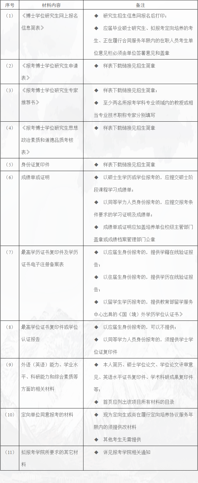 博士生报考申请主要材料: