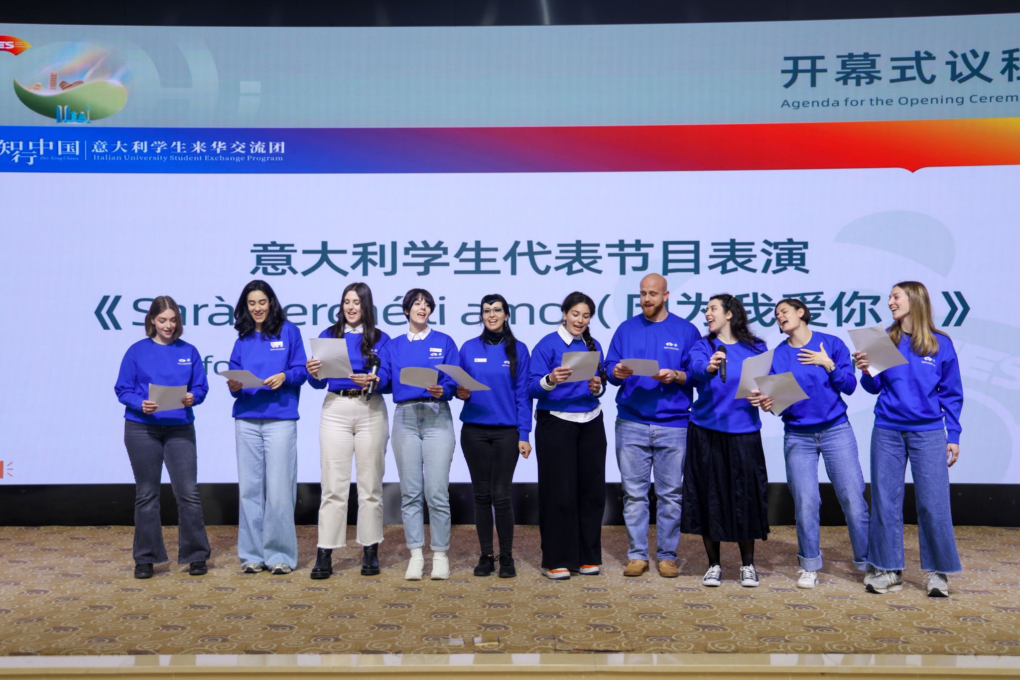 致辞环节结束后,中意双方学生带来了精彩的文艺表演,展示了两国独特的文化艺术魅力。随后,参会领导嘉宾向意大利学生赠送活动纪念品,传递出“文明之美,美美与共”的美好寓意。