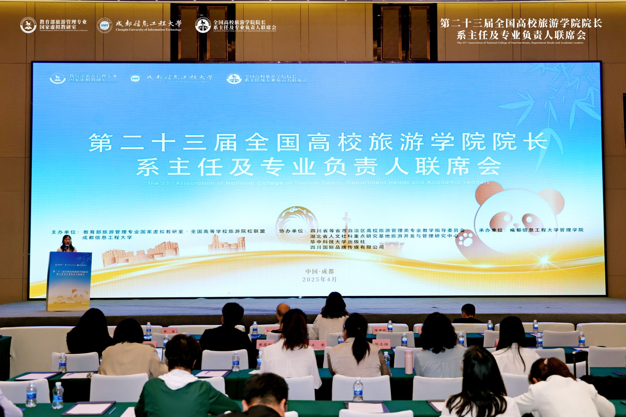 【本网讯】4月18日至20日,第二十三届全国高校旅游学院院长、系主任及专业负责人联席会在成都召开。本次大会由教育部旅游管理专业国家虚拟教研室、全国高等学校旅游院校联盟、江南买球共同主办,四川省等省市自治区高校旅游管理类专业教学指导委员会、湖北省人文社科重点研究基地旅游开发与管理研究中心、华中科技大学出版社、四川国际品牌传媒有限公司协办,学校管理学院承办。来自全国170多所高校的400余位旅游行业专家、学者参加会议,会议围绕“全方位创新助推旅游教育强国建设”主题,设置了江南买球才艺秀场、开幕式、主题演讲、专题发言、圆桌论坛环节。