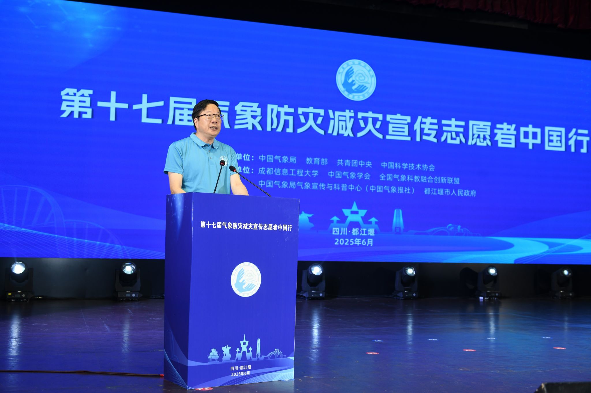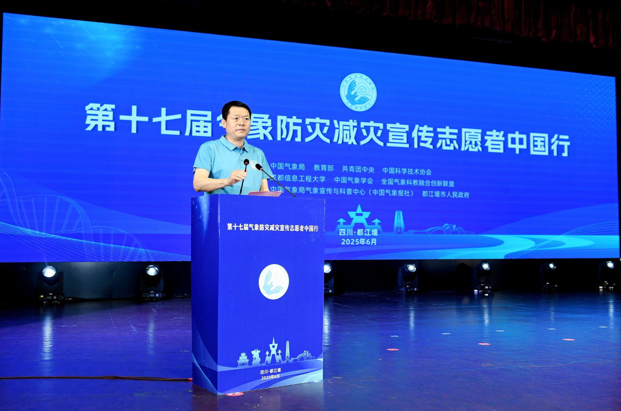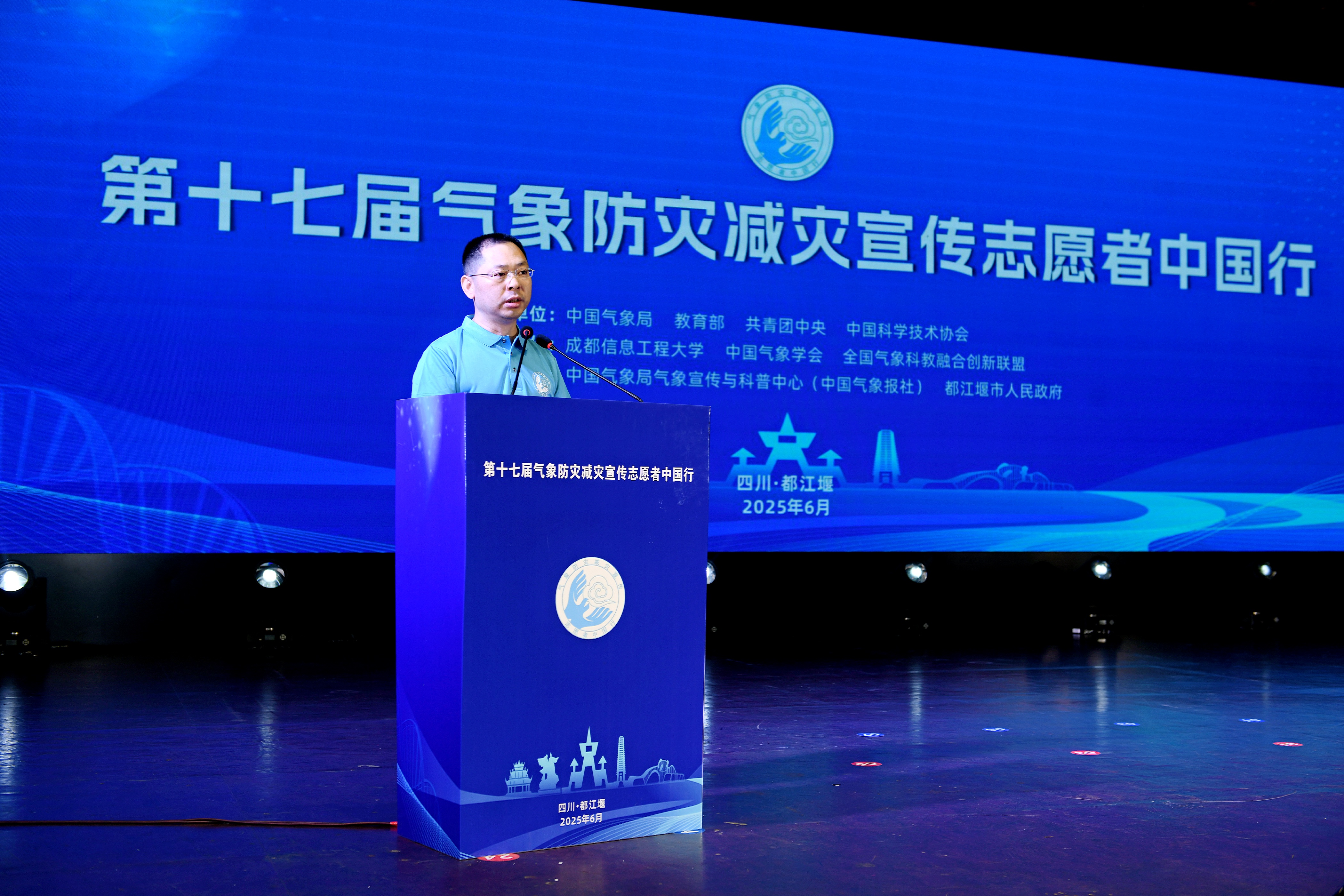 谭凌云代表都江堰市人民政府,向各位领导、嘉宾、志愿者朋友致以热烈欢迎。他表示,都江堰市深入贯彻习近平总书记重要指示精神,守好气象防灾减灾“第一道防线”,建成X波段气象雷达,“气象管家”等业务系统平台年均发送预警信息300万余条,连续八年获成都市气象服务先进集体。他感谢志愿者们为都江堰市提升公众气象防灾减灾救灾意识,助力提高都江堰市综合防灾能力所做的贡献。