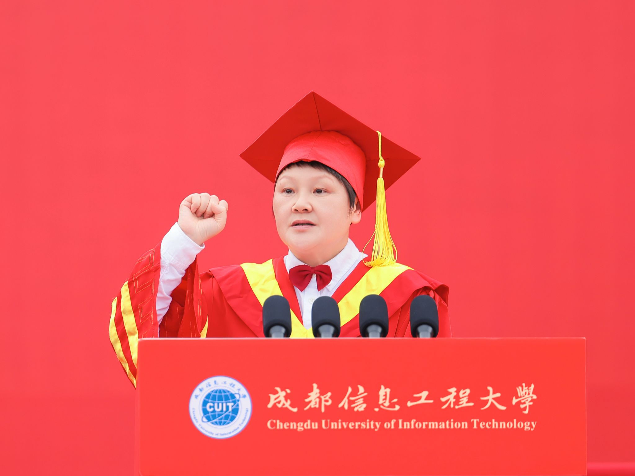 大气科学学院2025届本科毕业生冯士哲在发言中,以“破云・求真”“扎根・担当”“发光・同行”为关键词,讲述他在学校“气象+”培养体系下掌握专业技能、参与凉山气象科普支教等经历,感谢学校“三全育人”理念赋予追梦力量。他鼓励毕业生牢记使命,以创新魄力和广阔胸怀在新时代书写华章。
