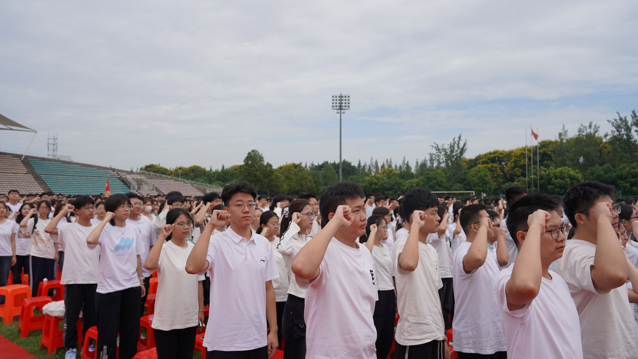 在陈权亮的带领下,全体2025级新生庄严宣誓,整齐铿锵的誓言展现了新一代成信人昂扬的精神风貌和坚定的决心。为期14天的军训将于当日下午启动,他希望同学们以积极的姿态、昂扬的斗志,投身到军训中去,学习人民军队的优良传统和作风。