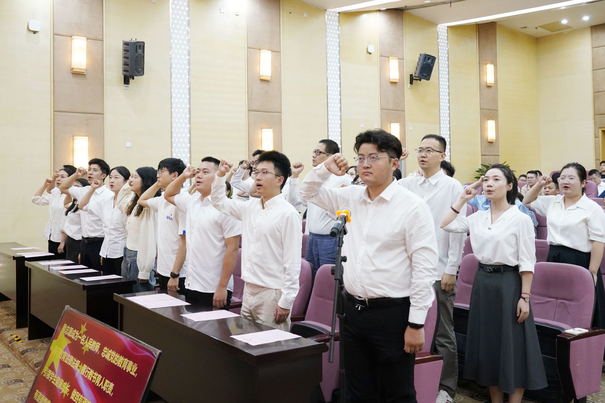 大会现场,新进教师代表侯冬冬领誓,全体新进教师庄严宣读师德承诺,用铿锵有力的誓言坚定践行教育家精神、投身立德树人事业的决心。