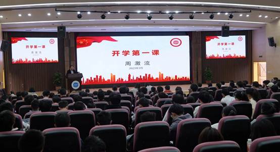 【本网讯】3月9日下午,学校在国际会议厅举办“学习二十大 奋进新征程”主题教育,学校党委书记周激流作“开学第一课”专题报告,200多名学生代表到场聆听了报告会。