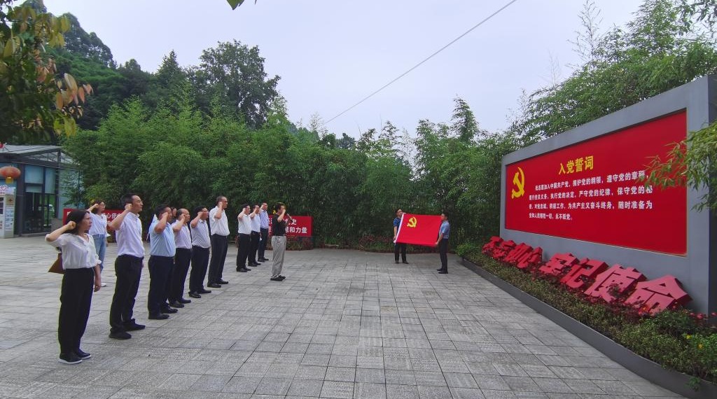 在纪念馆广场上,全体成员在党委书记周激流的带领下集体重温入党誓词,再次接受深刻的党性教育和灵魂洗礼。