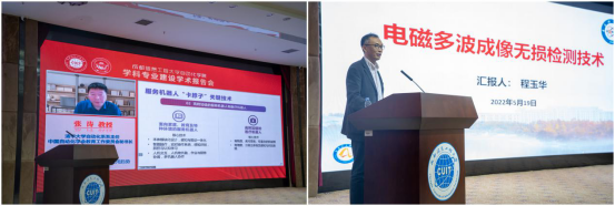 揭牌仪式后,工信部电子科技委委员、国际IET学会Fellow、清华大学信息科学技术学院副院长张涛教授和国家级人才、电子科技大学自动化工程学院院长程玉华教授特邀为师生作报告,舒红平主持学术报告会。张涛教授以“智能无人系统发展现状与应用趋势”为题,从无人系统和智能无人系统的概念开始,阐述了智能无人系统自主性和智能性的特点、智能无人系统的发展前景、发展现状、关键共性基础理论、“卡脖子”关键技术、典型应用和张教授团队的智能无人系统研究成果。程玉华教授以“电磁多波成像无损检测与评估技术”为题,阐述了无损检测技术、电磁成像无损检测技术、电磁多波成像无损检测与评估技术以及程教授团队在此领域取得的标志性成果。